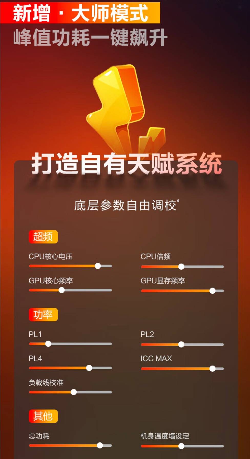 强大的双核,必须有强大的散热来“驾驭”。暗影精灵MAX搭载了全新的酷凉风暴散热技术。这套系统采用了6热管与双风扇的豪华散热模组,并且在CPU和GPU上都使用了导热系数高达8.5W/m·K的热融相变硅脂,远超传统硅脂。这一切努力,只为了一个目标:性能的极致释放。在大师模式下,这台机器的整机功耗释放甚至可以达到惊人的190W+!而狂暴模式下,整机性能释放160W,噪音控制在45分贝上下。你只管沉浸在游戏中,发热和噪音的烦恼,交给酷凉风暴去解决。