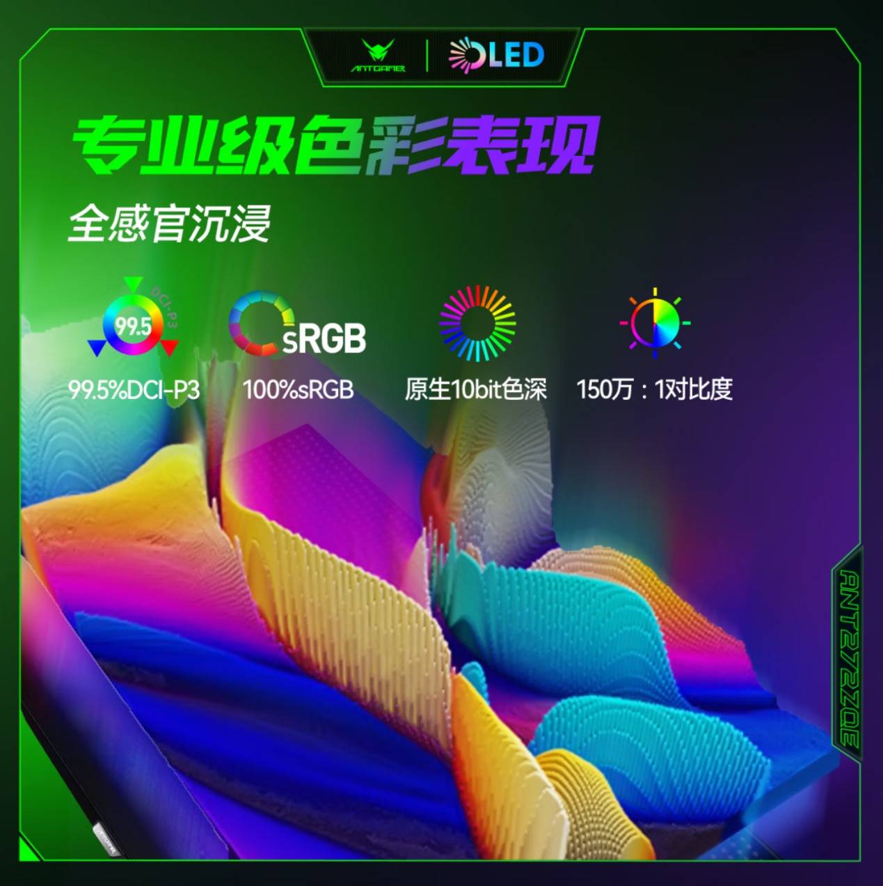 蚂蚁电竞ANT272ZQE的目标用户,并不仅仅是追求极限速度的电竞玩家,更是那些对色彩有着高要求的人群。这款显示器在色彩表现力上同样堪称“怪兽级”。它拥有高达99.5%的DCI-P3色域覆盖率和100%的sRGB色域。它能展现出远超普通显示器的丰富色彩,无论是色彩绚丽的游戏场景,还是观看好莱坞大片,都能享受到色彩丰富真实的快感。