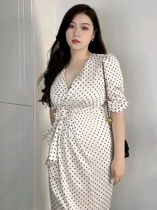这款连衣裙选用米色,温暖而内敛,如同初春的阳光,让人感受到青春的活力感。米色与波点的结合使得整个连衣裙既有现代感又不失古典韵味。就像是一幅抽象画作,将两种截然不同的色彩融合在一起,呈现出一种新的美感。