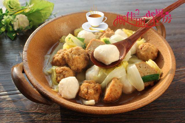 推荐菜谱【双丸烩大白菜】 原料: 大白菜 肉丸 鱼丸 葱花 油盐