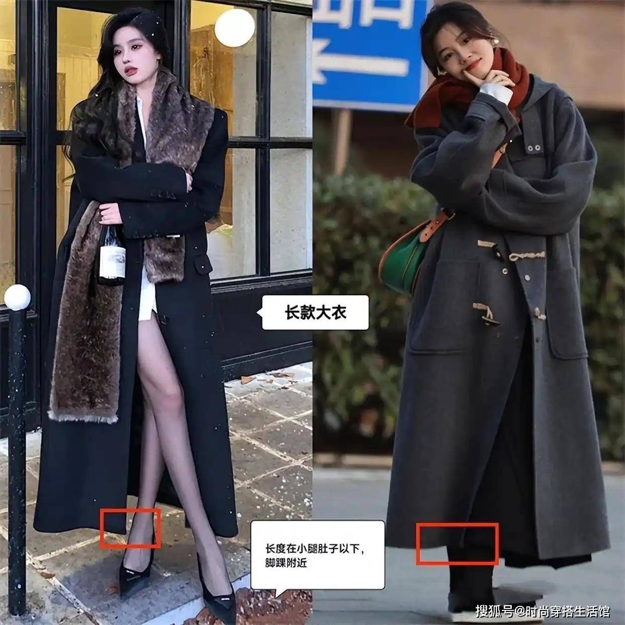 其次对于冬天来说哦我们选择大衣的时候还要注意长度的选择,对于小个子女性来说我们要避免选择长度在小腿肚子以下和脚踝附近的长度,这样很容易穿出拖沓累赘的效果,那么最好的方式就是选择过膝不过脚踝,完全不用担心会压低个子显矮显胖。