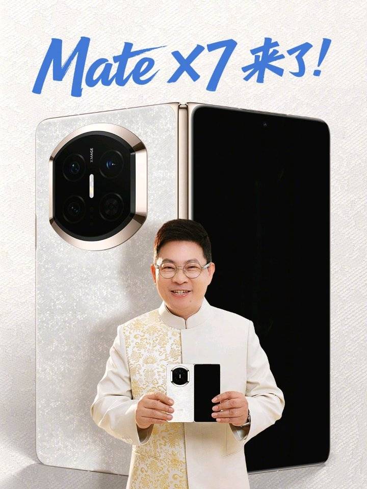 今日,华为常务董事、产品投资委员会主任、终端BG董事长余承东通过社交媒体发布了一段关于折叠屏旗舰 Mate X7 的宣传视频,展示了新机的外观设计,其“越展开越心动”的宣传口号与“光织云锦,卓然出众”暗示了东方美学与科技的结合。