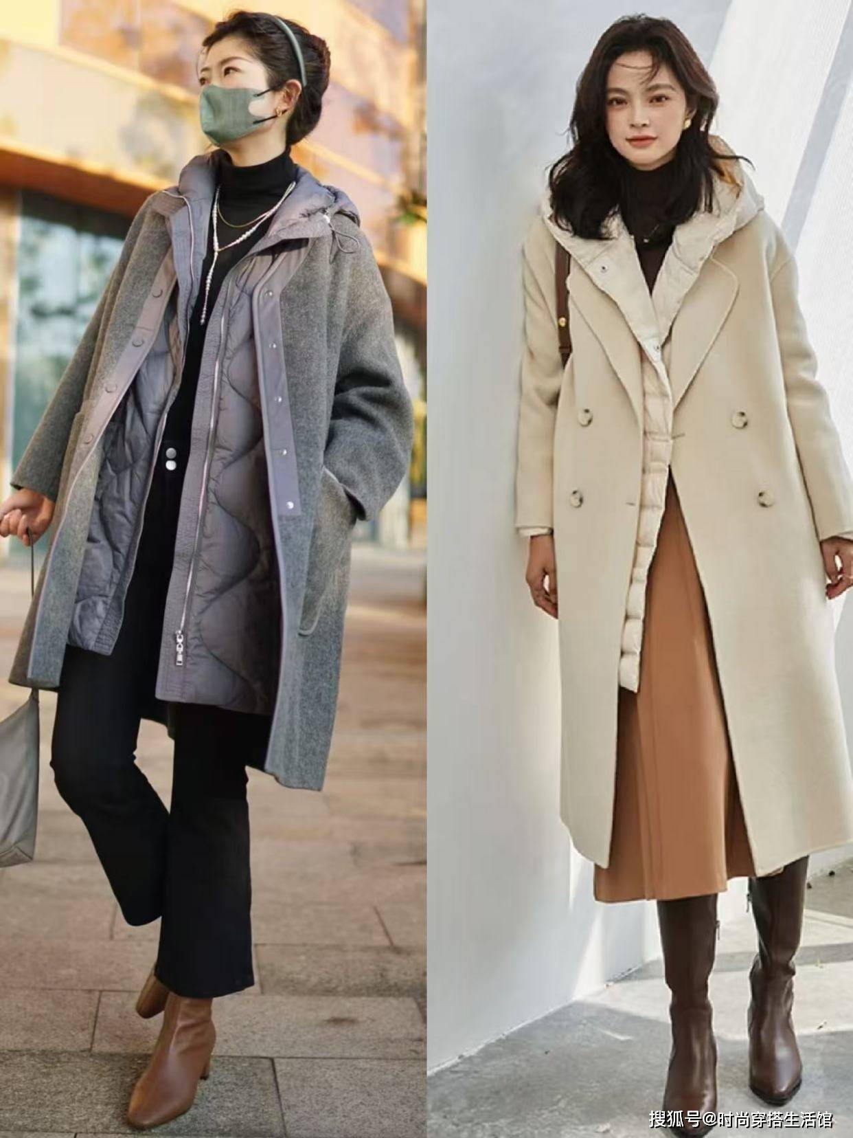 组合二:大衣叠穿羽绒+打底衫,温暖时髦