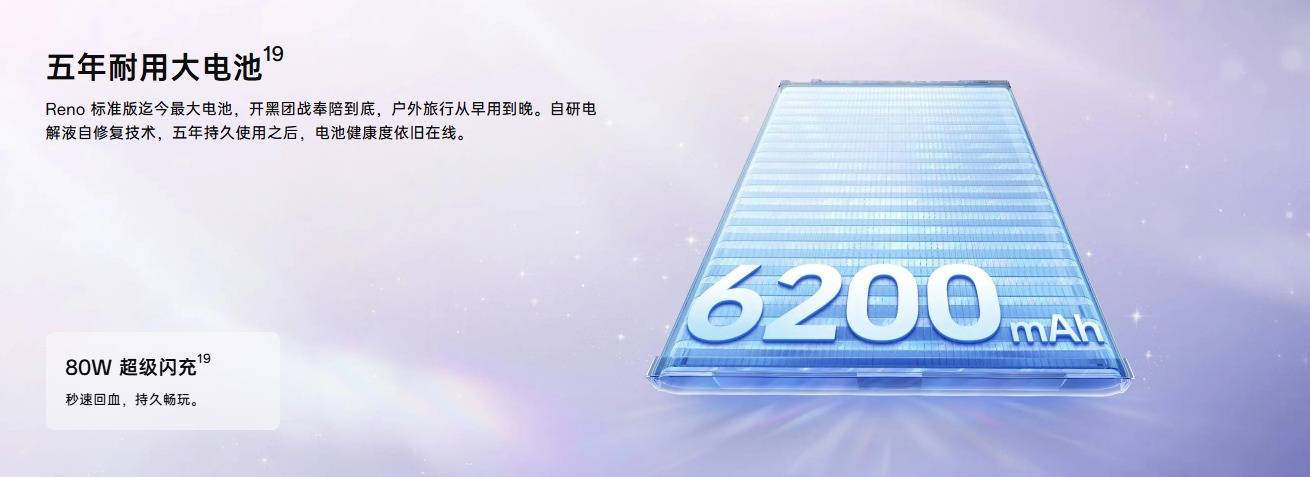 Reno15 Pro配备五年耐用大电池,支持约6小时蓝光直播。80W快充可快速补能,旁路供电让边充边播更加稳定。山海通信增强双芯可智能评估网络质量,在弱网、人多等环境下主动增强信号,确保直播不断流。