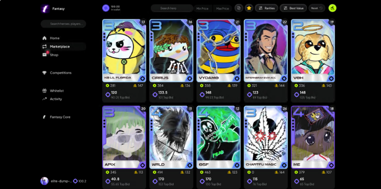 平台现已上线,用户可购买NFT卡包、组建战队并参与锦标赛。