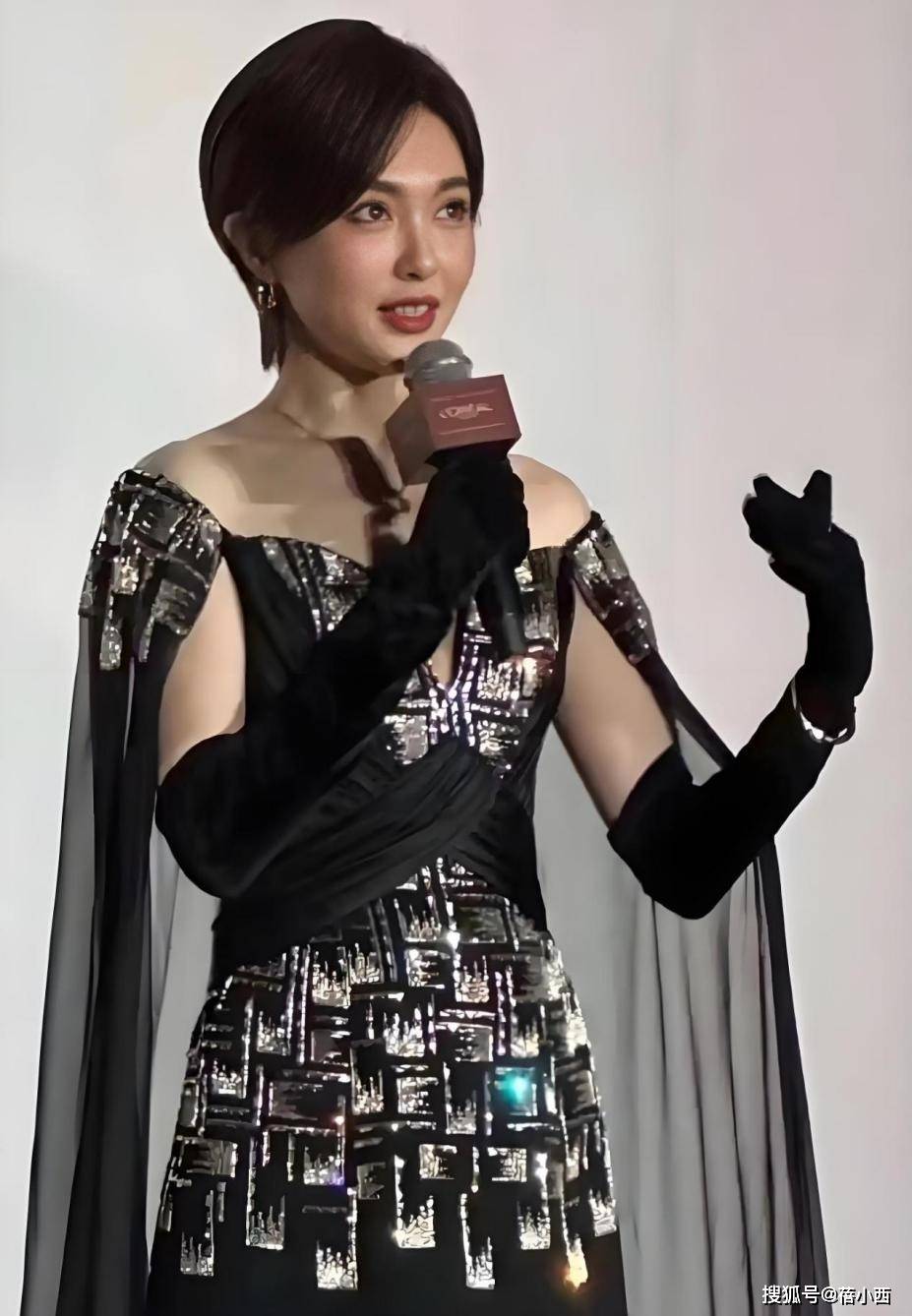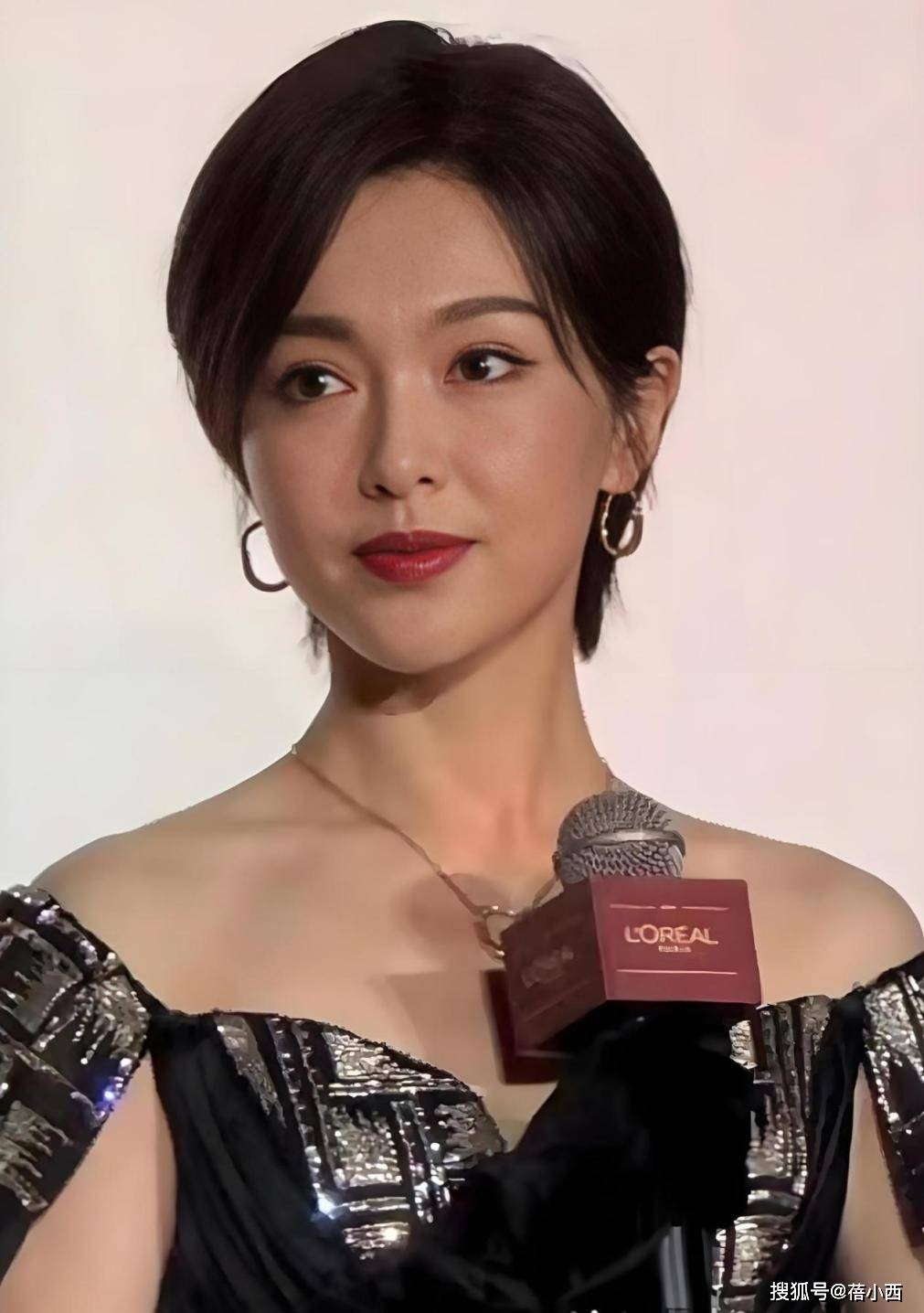 41岁“唐嫣”剪短发后像换了个人,穿露肩裙又美又飒,差点认不出